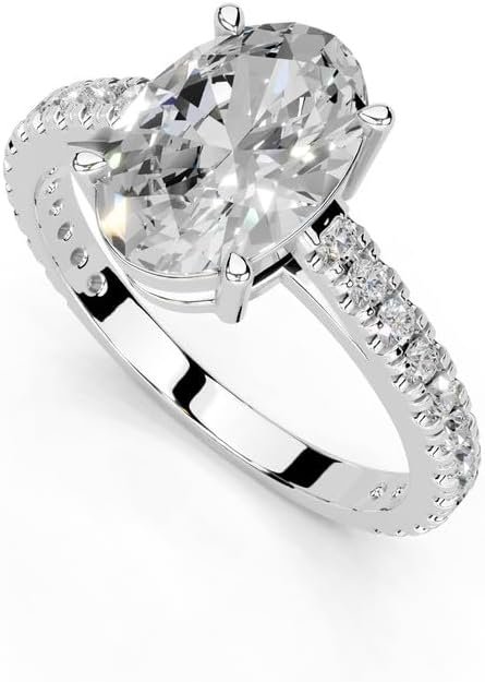 - ELEGANT AND SECURE DIAMOND SETTING: The classic 4 prong setting firmly holds the Oval Shape lab-grown diamond in position, keeping it safe while enhancing its brilliance. The sophisticated setting maximizes the light reflection, enabling the diamond to sparkle with great beauty and brilliance, making lab grown diamond rings / lab created diamond rings perfect for any special occasion.