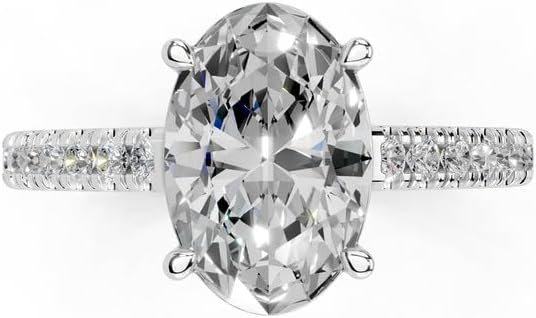 1-5 Carat 14K 18K Gold Platinum Classic 4 Prong Pave Oval Shape Lab Grown Diamond Ring, Engagement, Anniversary, Wedding, IGI Certified, Promise Rings for Women (1-5 Ct, F-G Color, VS1-VS2 Clarity)