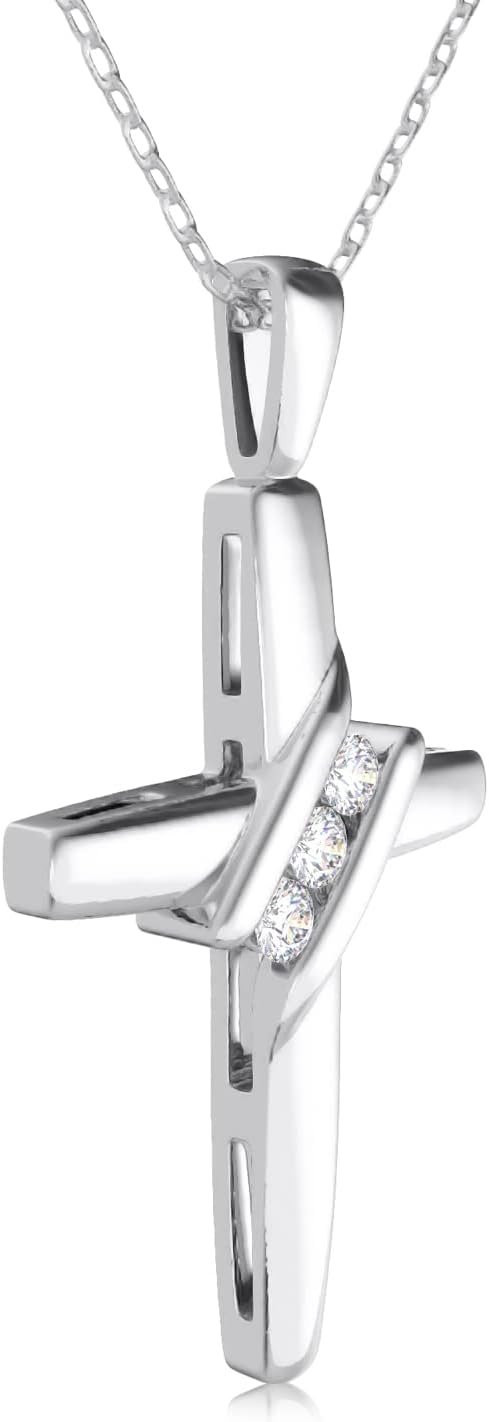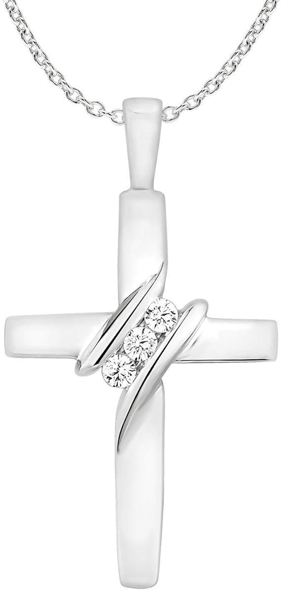 10k Diamond Three-Stone Cross Pendant Necklace Religious Jewelry (0.05cttw, I-J/I2-I3) 18″