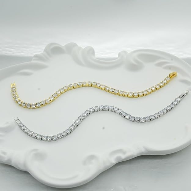 - Material:The tennis bracelet 4mm grade cubic zirconia stones in a four claw basket setting. The length is 7.5inch/19cm, the bling bling sparkly AAAA CZ Diamond Tennis Bracelet will give you a good wearing experience, you can wear it with confidence