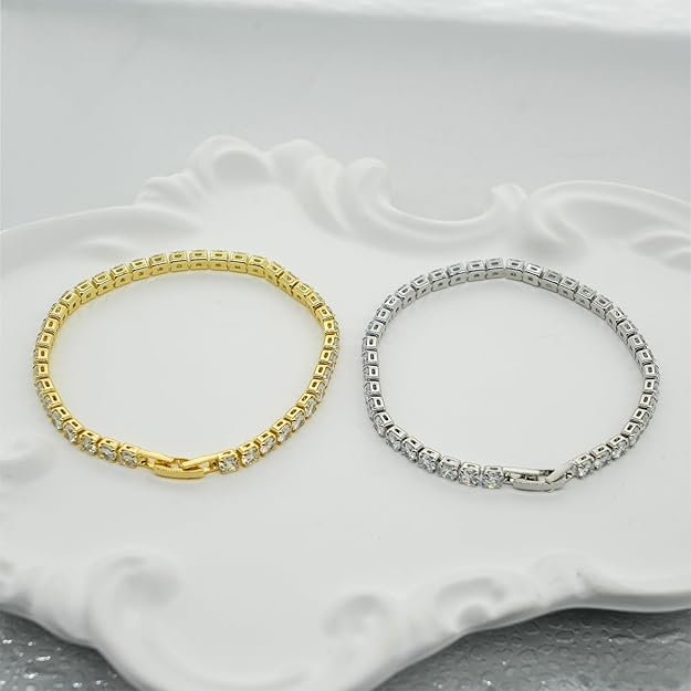 Be the first to review “18K Gold/Silver Plated 4mm High Carbon Diamond Classic Tennis Bracelet,Stainless Steel Silver Chain for women,size 7.5inch,Gold Bracelets jewelry for women”