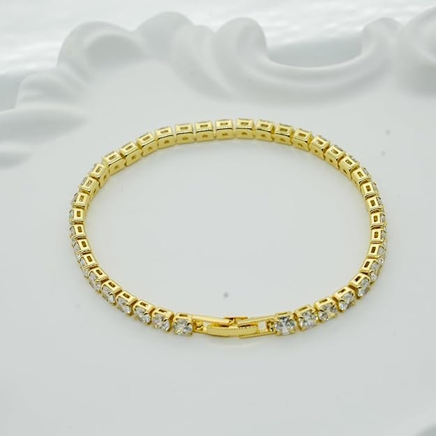 18K Gold/Silver Plated 4mm High Carbon Diamond Classic Tennis Bracelet,Stainless Steel Silver Chain for women,size 7.5inch,Gold Bracelets jewelry for women