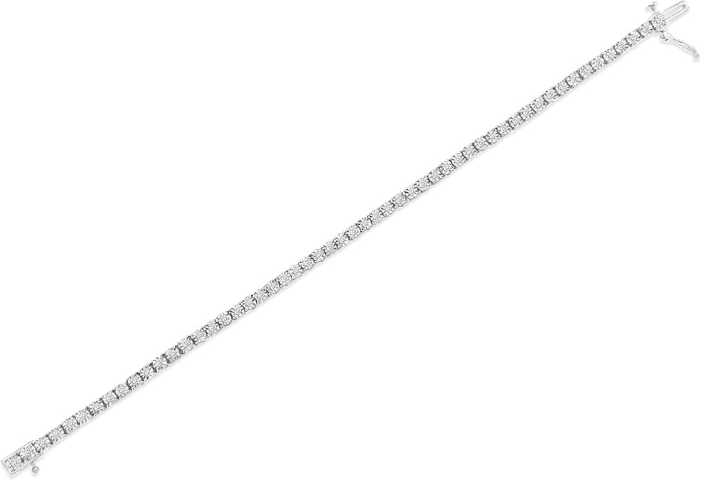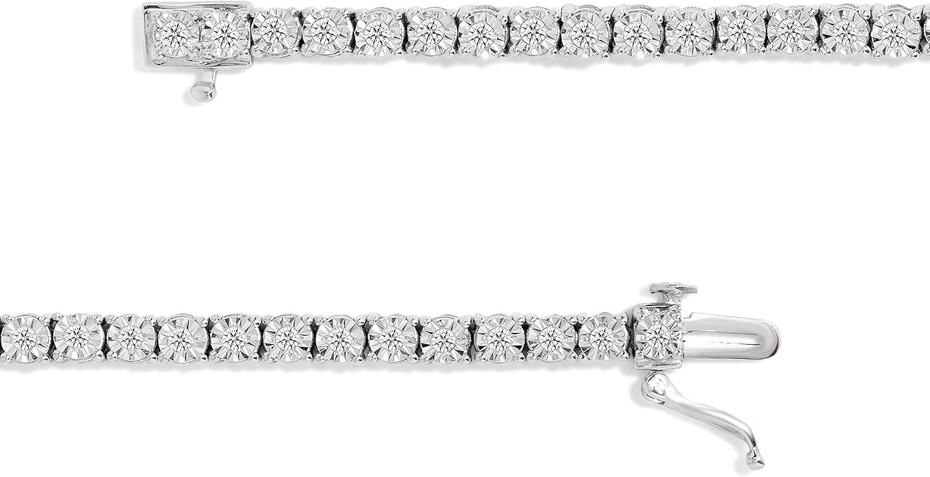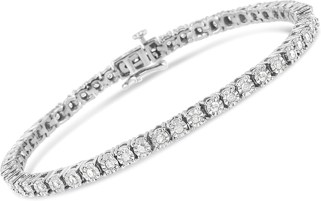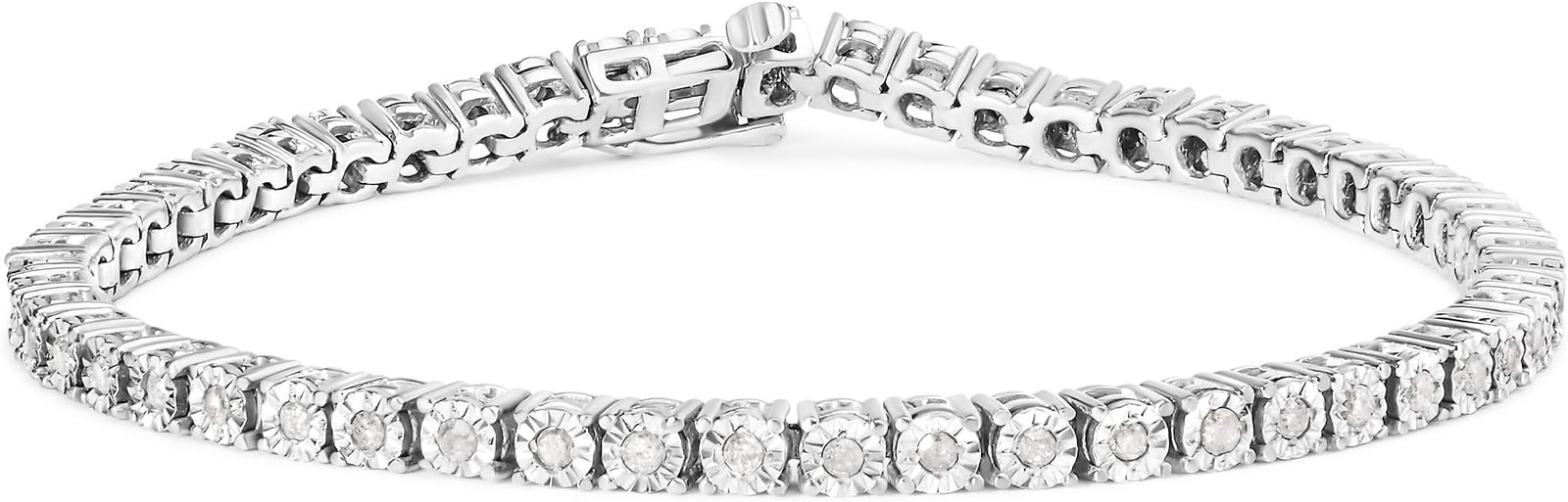 - DAZZLING DESIGN – This tennis bracelet showcases 1 carat of I3 clarity diamonds. Antique-inspired miracle-plate settings in high-polish .925 sterling silver magnify sparkle for a larger look. A secure box clasp with safety ensures all-day comfort.
